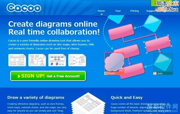 這款工具支持22種語(yǔ)言,適用于全球大多數(shù)用戶(hù)。支持實(shí)時(shí)團(tuán)隊(duì)協(xié)作,用戶(hù)可以同時(shí)在線使用這款原型工具。運(yùn)用它可以制作多種圖表,例如:site maps, wire frames, UML和網(wǎng)絡(luò)圖表等。