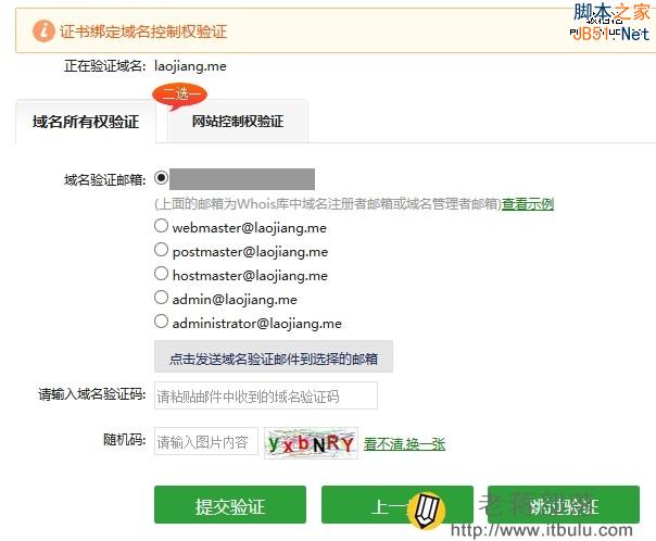 這里需要驗(yàn)證域名的所有權(quán),發(fā)送WHOIS郵件或者網(wǎng)站控制權(quán)驗(yàn)證。