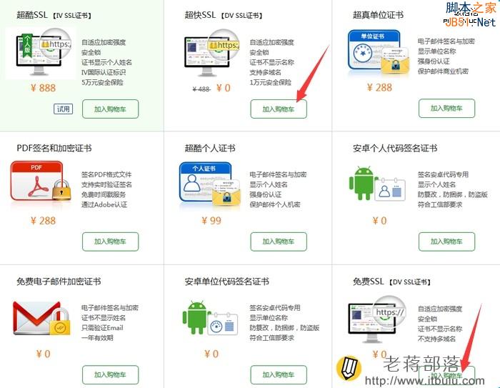 這里可以根據(jù)提供的方案中選擇一款免費(fèi)的SSL證書產(chǎn)品,你也可以選擇付費(fèi)的。因?yàn)閃oSign的免費(fèi)和付費(fèi)基礎(chǔ)需要也沒有多大區(qū)別,免費(fèi)的還是不錯(cuò)的。