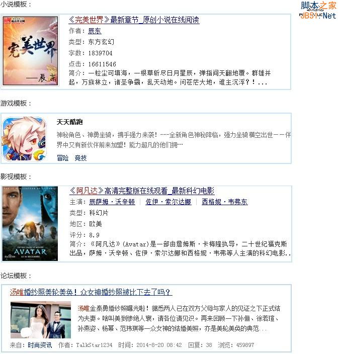 只有您以結(jié)構(gòu)化的形式提交您的站點(diǎn)數(shù)據(jù),才能夠正常使用小說、游戲、影視、論壇等行業(yè)模板: