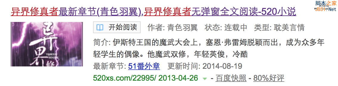 小說網(wǎng)站結(jié)構(gòu)化數(shù)據(jù)在網(wǎng)頁搜索效果圖: