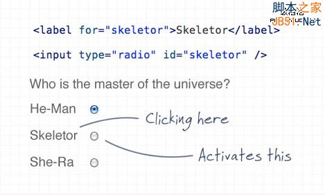 利用“for”屬性允許用戶(hù)單擊label也可以選中表單中的內(nèi)容。這可以擴(kuò)大復(fù)選框和單選框的點(diǎn)擊區(qū)域,非常實(shí)用。