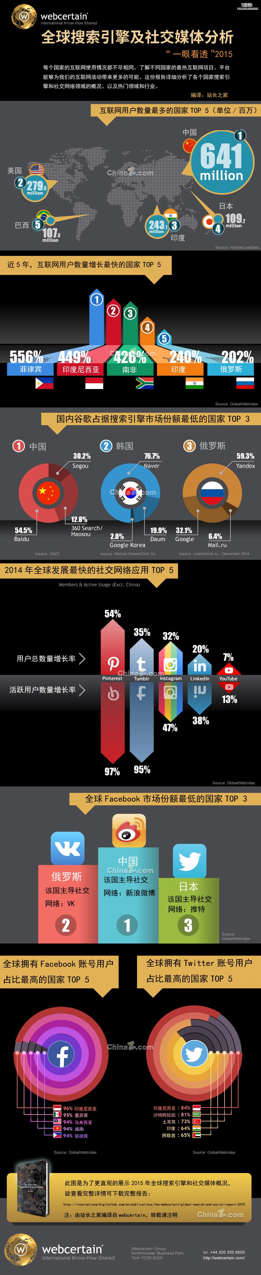 3月5日消息 近日,Webcertain發(fā)布了全球搜索及社交媒體分析報告。據(jù)報告顯示,在印度尼西亞Twitter和Facebook的滲透率全球居首;Pinterest、Tumblr、以及Instagram是全球發(fā)展最快的社交應用;谷歌搜索引擎在中國、韓國、以及俄羅斯這三個國家的搜索市場份額為全球最低。詳情如下圖: