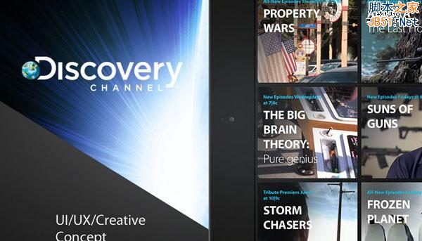 Serge Mistyukevych的Discovery Channel Ipad聰明地使用瀏覽器和設(shè)備截圖層疊在不顯眼的黑色背景上,呈現(xiàn)出了一種圓潤而華麗的感覺。