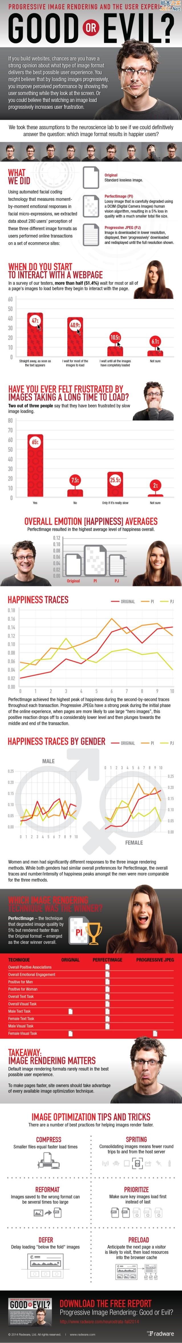 “由于我們生活在視覺時代,網(wǎng)站圖片的加載速度往往就成為了重要問題。研究表明,面對網(wǎng)站上不間斷的復雜信息流,消費者可能會感到精神疲勞。而當圖像分成兩階段呈現(xiàn)時——這是漸進式JPEG文件中用到的方法——消費者不得不更加費力地去理解顯示的內(nèi)容是什么,這反過來增加了訪客的不滿程度。”