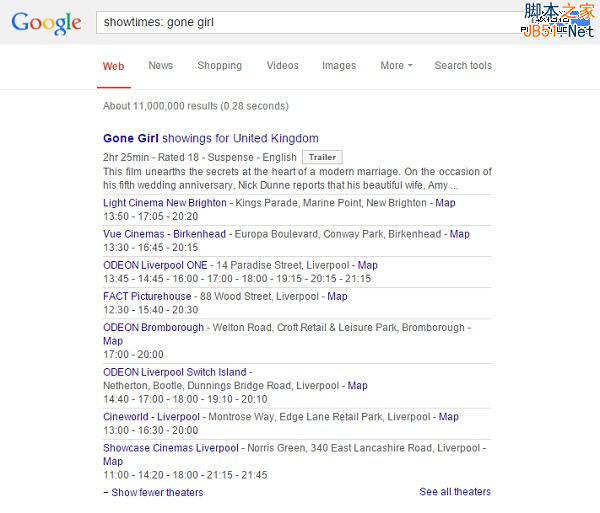 如果你正打算去看某部電影,那么直接用谷歌搜索查看放映信息吧。showtimes指令還可以附加上所在地等信息,以便提供更詳細(xì)精準(zhǔn)的結(jié)果。