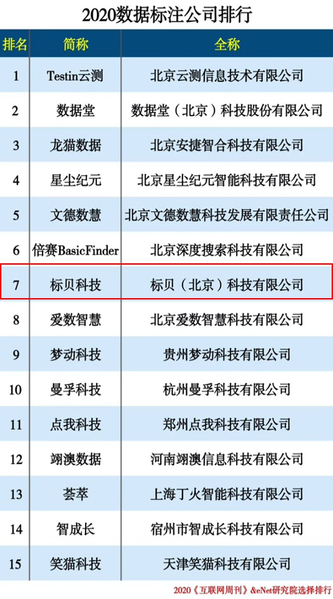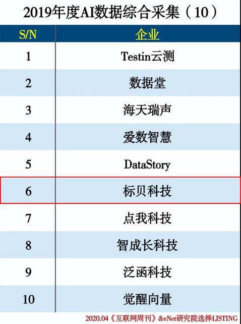 4月16日,中國科學(xué)院主管、科學(xué)出版社主辦的核心雜志《互聯(lián)網(wǎng)周刊》聯(lián)合eNet研究院共同發(fā)布了《2019年度大數(shù)據(jù)產(chǎn)業(yè)分薦》榜單。標(biāo)貝科技憑借專業(yè)、高精度的AI數(shù)據(jù)采標(biāo)服務(wù),入選“2019年度AI數(shù)據(jù)綜合采集TOP10”。同時,這也是標(biāo)貝科技不久前入選以上機(jī)構(gòu)發(fā)布的“2020數(shù)據(jù)標(biāo)注公司排行”榜單后,獲得的又一行業(yè)殊榮。
