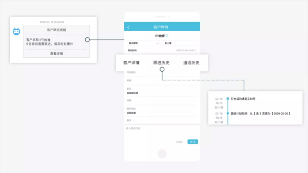 手機端會推送信息及時提醒跟進,并支持一鍵查看客戶詳情、跟進歷史、通話歷史,讓銷售隨時掌握客戶情況,進行準(zhǔn)確高效的營銷服務(wù)。