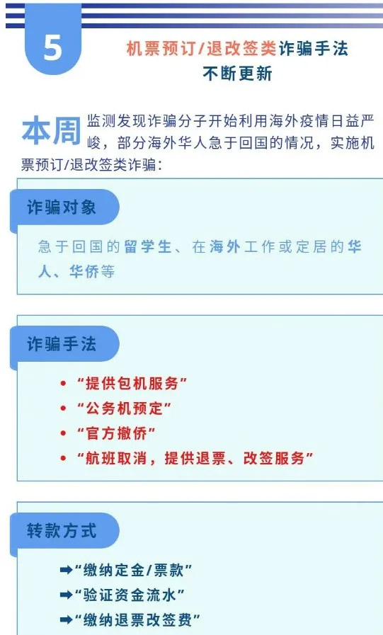 近期,涉疫情電信網(wǎng)絡(luò)詐騙開始有所抬頭,“復(fù)工復(fù)產(chǎn)”類詐騙不斷出現(xiàn),包括防疫物資銷售詐騙、防疫機票退改簽詐騙等形式不斷出現(xiàn)。同時,冒充警方進行電話通知需要疫情隔離再進行電信敲詐、敲詐隔離人員家屬等疫情詐騙活動也花樣翻新,但終歸都是一個目的,通過電信手段非法獲取錢財。