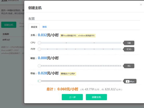 因為只是試試,也不用數(shù)據(jù)盤,因為是linux系統(tǒng),1核512M 差不多了,一個月43元,比較便宜