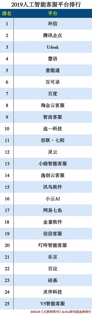 近日,《互聯(lián)網(wǎng)周刊》研究院發(fā)布2019人工智能分類排行,其中環(huán)信憑借領(lǐng)先的AI算法能力、完善的AI工程能力,以及包括在保險(xiǎn)、證券、金融、教育、物流等行業(yè)的頭部客戶占比優(yōu)勢(shì),榮膺智能客服行業(yè)榜首。