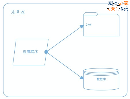 最初的架構(gòu),應(yīng)用程序、數(shù)據(jù)庫(kù)、文件都部署在一臺(tái)服務(wù)器上,如圖: