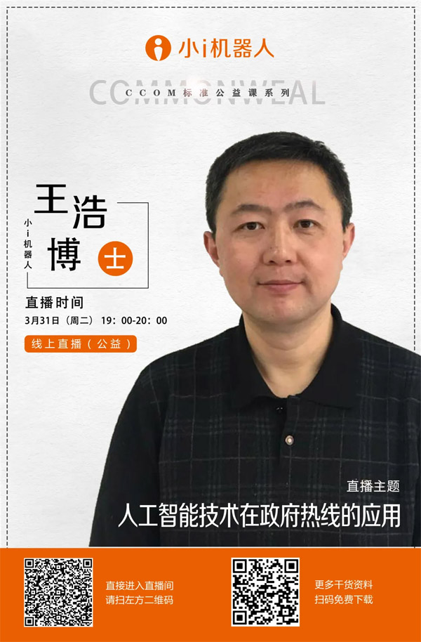 為響應(yīng)各地政府熱線探討如何提升管理水平、提高服務(wù)質(zhì)量的呼吁,作為政務(wù)服務(wù)行業(yè)的“資深專家”,小i機器人聯(lián)合易訓(中國)管理研究院推出一期以“人工智能技術(shù)在政府熱線的應(yīng)用”的公益直播課。