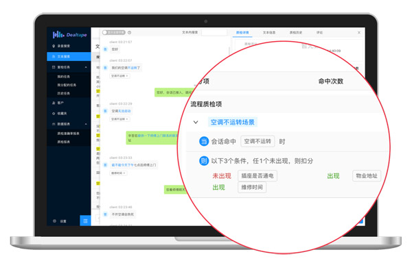 例如,某個專業(yè)的、提供居住服務(wù)的企業(yè),要求當客戶提到“空調(diào)不運轉(zhuǎn)”的場景時,在線客服人員需要向客戶確認“插座是否通電”、“物業(yè)地址”和“維修時間”,如果沒有提到其中任何一個,都會被判定為不合格。