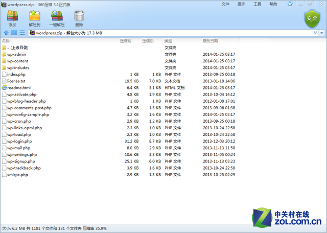 PS:看到一些朋友部署出現(xiàn)了問題,請確認一下下載下來的WordPress安裝包是不是在根目錄下打包的,如下圖所示: