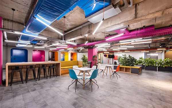 Webhelp伊茲密爾的辦公室是一個呼叫中心,與其它多家合作公司在一起共同辦公。比如:土耳其Pegasus航空、電商Trendyol、Garanti銀行。每家公司都有各自獨立的員工工作區(qū),并根據(jù)各自品牌而賦予個性化空間設(shè)計。除此之外,1300平方米的辦公室還設(shè)有共享的社交空間、休閑區(qū)、衛(wèi)生間和廚房設(shè)施。
