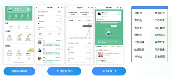 理財經(jīng)理或代理人通常會反饋這樣的問題,例如平均手上有50-100個客戶,但不知道哪些是潛在的保險客戶;考核任務(wù)重,沒有時間系統(tǒng)學(xué)習(xí)保險知識,想給客戶推薦保險,不知道推薦什么產(chǎn)品;理財經(jīng)理經(jīng)常收到公司的宣傳資料,轉(zhuǎn)發(fā)產(chǎn)品資料容易驚擾的客戶,又達(dá)不到很好的效果不知道如何通過有效方式與客戶建立聯(lián)系等。有了AI產(chǎn)品助理,問題一下解決,讓簽單成為易事。