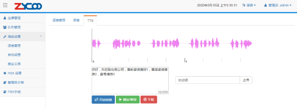 支持文字轉(zhuǎn)語音功能,通過TTS功能可以輸入相應(yīng)的文字轉(zhuǎn)成與之對應(yīng)的語音文件,該語音文件可用于呼出及呼入的IVR語音播報。不再需要專人錄音,提升效率,降低人工成本。
