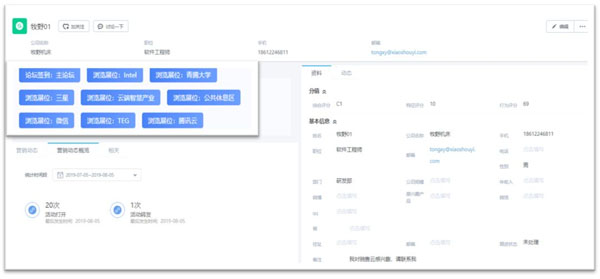 營銷線索360度視圖通過客戶線索標(biāo)簽管理、客戶互動(dòng)歷史、線索分值及熱度以及基本信息和渠道偏好,豐富展示線索信息,精準(zhǔn)分析客戶畫像,洞察客戶需求,幫助企業(yè)有針對(duì)性地進(jìn)行營銷推廣和活動(dòng)邀請(qǐng),讓營銷可以有的放矢,從而提升線索轉(zhuǎn)化率。