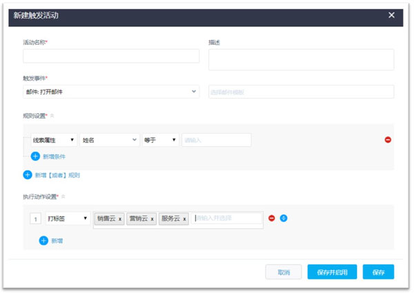 客戶標(biāo)簽依據(jù)客戶的觸發(fā)活動(dòng),例如瀏覽了哪些內(nèi)容、參加了哪些活動(dòng),同時(shí)集成第三方數(shù)據(jù),形成客戶標(biāo)簽,讓你更懂你的客戶。