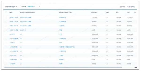 本次新版本發(fā)布,實(shí)現(xiàn)通過選擇產(chǎn)品、價(jià)格,快速查看商機(jī)明細(xì)詳情,及時(shí)了解訂單內(nèi)容、產(chǎn)品報(bào)價(jià)等信息,并支持一鍵導(dǎo)出。