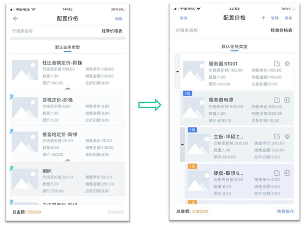 隨著新版CPQ移動(dòng)端推出,將訂單編輯頁面以組合產(chǎn)品形式進(jìn)行層級(jí)展示,既有利于客戶對(duì)組合產(chǎn)品進(jìn)行快速編輯,更利于直觀地查看各個(gè)組合產(chǎn)品的報(bào)價(jià)、折扣等信息,幫助企業(yè)實(shí)現(xiàn)組合產(chǎn)品的動(dòng)態(tài)配置,以及滿足多種促銷場景的復(fù)雜定價(jià),如特價(jià)、折扣、贈(zèng)品等,從而提升銷售人員報(bào)價(jià)效率,縮短從報(bào)價(jià)到成單的周期。