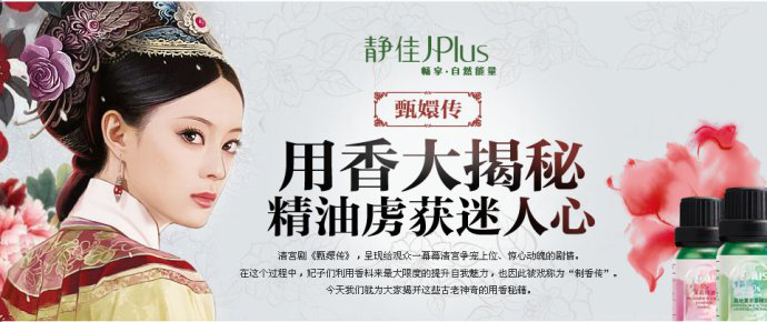 這是樂蜂網(wǎng)曾經(jīng)的一個(gè)專題頭圖,當(dāng)時(shí)《甄嬛傳》風(fēng)靡全國(guó)(大眾興趣),深受女性觀眾的喜愛;主題是精油,而《甄嬛傳》劇情里確實(shí)多處提到過和精油類似的各種香料(大眾興趣產(chǎn)品人群),投放在以賣化妝品為主、擁有大量女性用戶的樂蜂網(wǎng)站內(nèi)(大眾興趣產(chǎn)品人群投放環(huán)境)。我認(rèn)為這就是一個(gè)較典型的三元素相結(jié)合的案例。