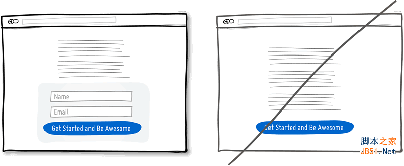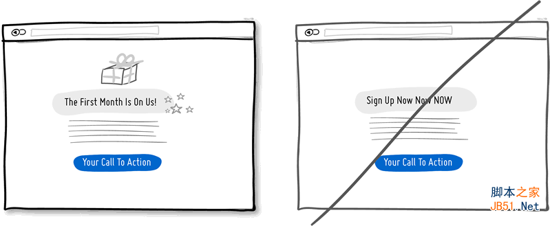 想象一個頁面中的兩個按鈕。一個寫著“幫你省錢”,一個要你“注冊”。我打賭點擊第一個按鈕的人會更多,因為一個孤零零的“注冊”難以展示產(chǎn)品的內(nèi)在價值?;蛘?,展示好處的內(nèi)容也可以放在距離Call to Action很近的地方,以便讓用戶知道為什么要去點擊按鈕。當然,不是所有的按鈕都需要展示這樣的文案;那些任務(wù)驅(qū)動的“普通”按鈕更適于對轉(zhuǎn)化率沒有什么要求的環(huán)節(jié)當中,或是需要用戶反復執(zhí)行的操作上。