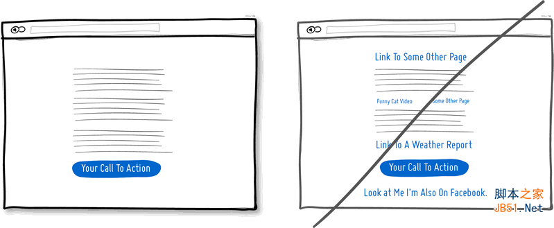 我們時常會創(chuàng)建出那種從左到右從上到下到處都是鏈接的頁面,并希望這樣可以滿足多數(shù)用戶的需求。不過如果你要打造的是敘事類的頁面,并會在內(nèi)容底部放置重要的Call to Action,那么建議你考慮更簡潔的頁面形式。要記住,任何位于主Call to Action之上的鏈接都會帶來一定的風險,有可能將用戶從你最希望他們做的事情當中帶離。留意頁面上鏈接的數(shù)量;在發(fā)現(xiàn)型頁面(鏈接較多,相關(guān)內(nèi)容入口較多)與管道型頁面(鏈接較少,目標集中,轉(zhuǎn)化率高)這兩類風格之間找到微妙的平衡,增大用戶順利抵達主Call to Action的幾率。