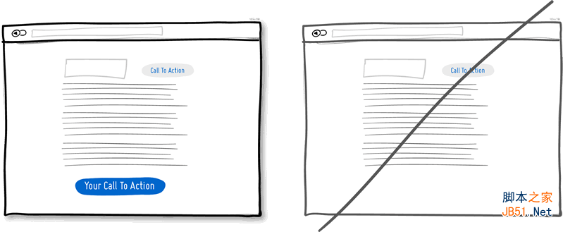 這種方式特別適合于單欄布局的長頁面,或者也可以讓Call to Action在多個頁面中多次出現(xiàn)。你自然不想在一個頁面中一口氣展示10個同樣的Call to Action,然而如今長頁面越來越普遍,讓所有內(nèi)容都保持在“折線以上”的原則越來越不受用。你可以試著在第一屏當中放置一個不那么強的Call to Action,然后將作用相同但視覺形式更突出的Call to Action放置在內(nèi)容底部。當人們看過所有內(nèi)容后,他們會停下來,思考一下接下來做些什么——就在這里,完成轉(zhuǎn)化或關(guān)閉交易。