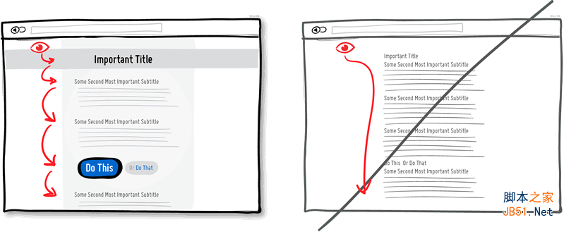 “內(nèi)容結(jié)束”的假象是轉(zhuǎn)化率的殺手。特別是在長頁面中那些段落分隔的地方,當心不要讓用戶覺得內(nèi)容已經(jīng)結(jié)束掉了。試著確定一種視覺模式與節(jié)奏,讓用戶可以得到明確的指引,持續(xù)閱讀內(nèi)容。對于有可能出現(xiàn)在“折現(xiàn)”位置的留白或內(nèi)容間距,要確保它們的尺寸不會過大。