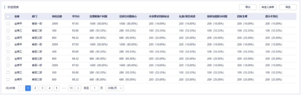 員工在對外的客戶服務(wù)中,雖然接受過公司的統(tǒng)一培訓(xùn),但每個(gè)人的領(lǐng)悟程度以及展現(xiàn)的專業(yè)性都會(huì)呈現(xiàn)出迥異的差別。溝通技巧的差異很大程度上直接決定了服務(wù)質(zhì)量或銷售產(chǎn)出。企業(yè)需要辨識(shí)出技能欠缺的員工及具體的彌補(bǔ)點(diǎn),針對性給出培訓(xùn),提升員工的溝通技能。系統(tǒng)提供豐富的多維度的查詢及統(tǒng)計(jì)報(bào)表,供企業(yè)管理人員管理日常的員工服務(wù)質(zhì)量,同時(shí)針對性的診斷報(bào)告可以精準(zhǔn)的定位問題點(diǎn),為企業(yè)快速提升員工專業(yè)度提供明確的方向指引。