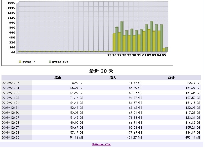 以下流量圖為我們一些高端客戶的流量圖:可以看到,該客戶每天使用的流量就高達(dá)150G,一個(gè)月高達(dá)4500GB,如果這位客戶的VPS是在一臺(tái)限制10M帶寬的服務(wù)器上,結(jié)果很會(huì)怎么樣呢?