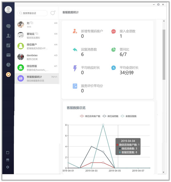 - 專屬客服。對于重要客戶或者有專人服務(wù)的客戶,可掃描員工個人專屬二維碼,即可擁有1v1專屬服務(wù)顧問