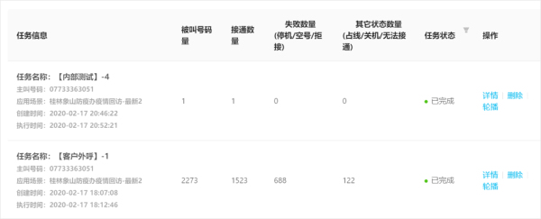 (圖1)疫情回訪機(jī)器人—桂林市象山區(qū)任務(wù)執(zhí)行示例