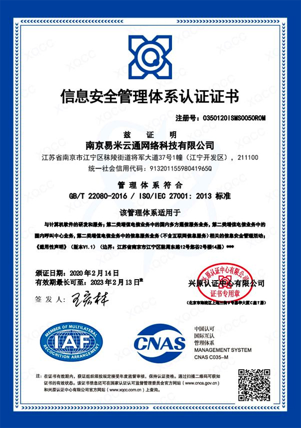 近日,易米云通ISO27001信息安全管理體系認(rèn)證證書獲得審批。未來,易米云通愿用更加先進(jìn)高效的AI智能語音技術(shù)產(chǎn)品和服務(wù),在抗擊疫情的關(guān)鍵時(shí)期,為更多政府機(jī)構(gòu)提供快速響應(yīng)和鼎力支持。