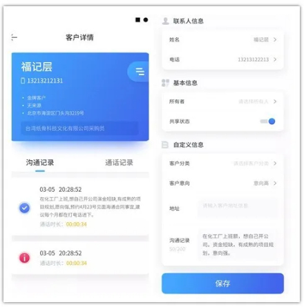 支持對(duì)本賬號(hào)的歷史通話(huà)進(jìn)行查詢(xún),點(diǎn)擊查看我的客戶(hù),并可對(duì)聯(lián)系人信息進(jìn)行修改編輯。