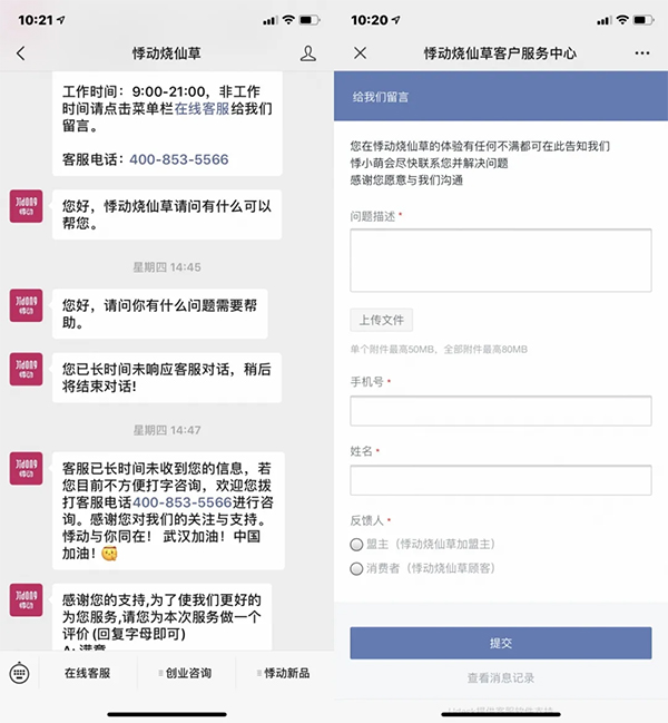悸動(dòng)燒仙草當(dāng)前使用的部門是客戶服務(wù)中心,受理各加盟伙伴的業(yè)務(wù)咨詢、疑問(wèn)解答、物料報(bào)損以及消費(fèi)者的咨詢、投訴等售后服務(wù)。
