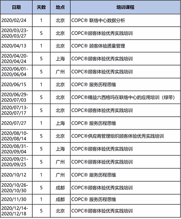 2020年COPC中國區(qū)公開課培訓(xùn)計(jì)劃