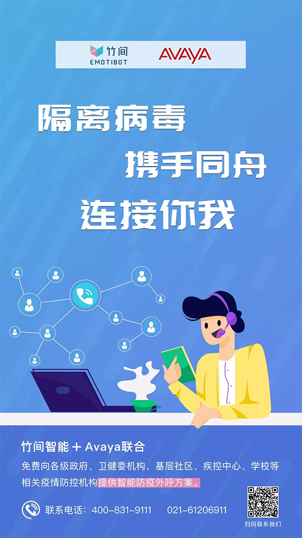 竹間智能聯(lián)合Avaya通過技術(shù)+平臺(tái),提供免費(fèi)部署智能防疫外呼方案服務(wù)。