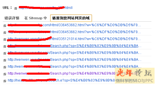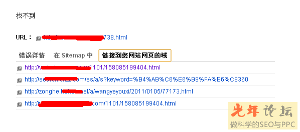 點(diǎn)擊第102條,彈出下面的框,url不在sitemap中,但是在自己的其他網(wǎng)站里面出現(xiàn),說明網(wǎng)址是網(wǎng)站自身存在的但是已經(jīng)被刪除了