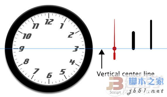 首先,我們需要準(zhǔn)備一些圖片來(lái)作為時(shí)鐘的圖形界面。這里我們用一張鐘盤圖片和三張指針圖片,其中運(yùn)動(dòng)的指針我們是用photoshop切割出來(lái)的600×30的圖片,并將其豎直放置。然后利用rotate屬性讓其繞中心點(diǎn)旋轉(zhuǎn)。當(dāng)然,指針使用的是透明的PNG格式圖片。