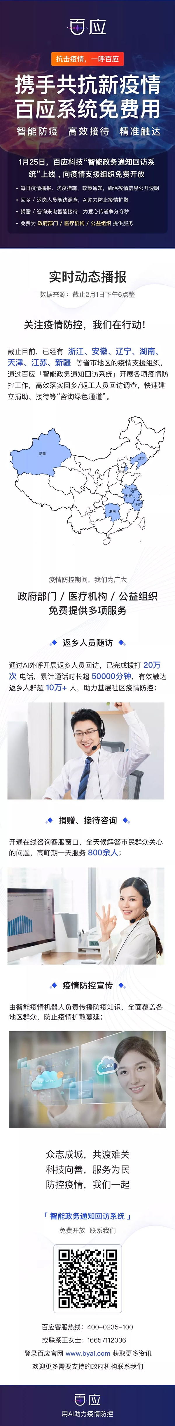 1月25日起,百應(yīng)科技「智能政務(wù)通知回訪系統(tǒng)」上線,向疫情支援組織免費開放(政府部門 / 醫(yī)療機構(gòu) / 公益組織等),助力各方做好信息收集與發(fā)布工作,實現(xiàn)更高效的溝通協(xié)作,保證信息公開透明、高效傳播。