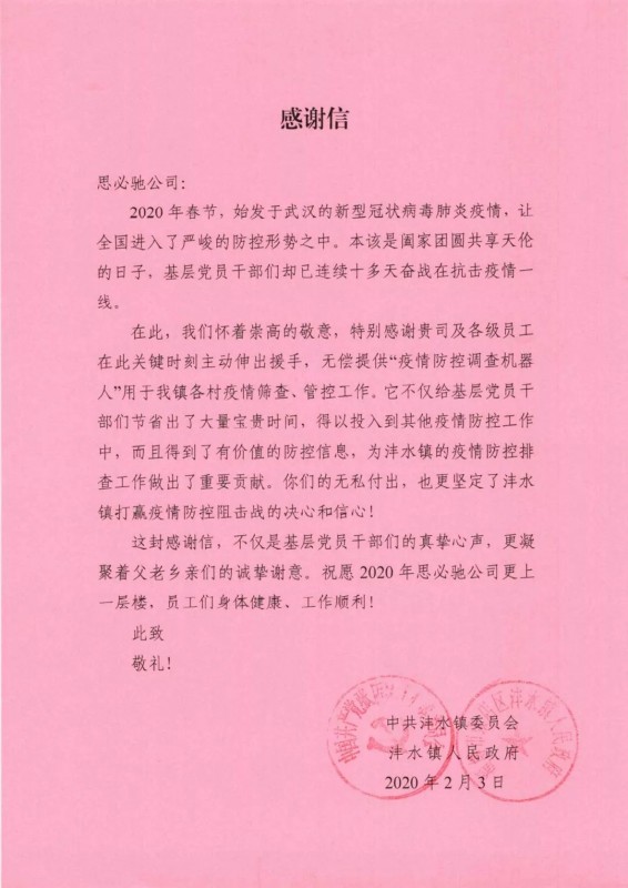 遠在700多公里外的山東省淄博市張店區(qū)灃水鎮(zhèn)相關(guān)工作人員,在得到思必馳“疫情防控機器人”免費服務的消息后,立刻提交了服務申請。思必馳特別行動小組根據(jù)該鎮(zhèn)情況,快速定制了話術(shù)腳本,對轄區(qū)13500余戶居民發(fā)起智能外呼。