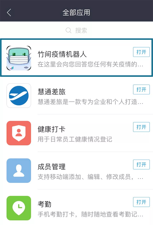 目前,竹間防疫機器人已順利入駐華為云WeLink平臺,注冊WeLink,并在管理員應(yīng)用中心開通竹間防疫機器人便可使用。