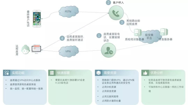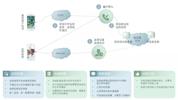 方式1 )PSTN:呼叫中心外呼遠(yuǎn)程座席的座機(jī)或者手機(jī)