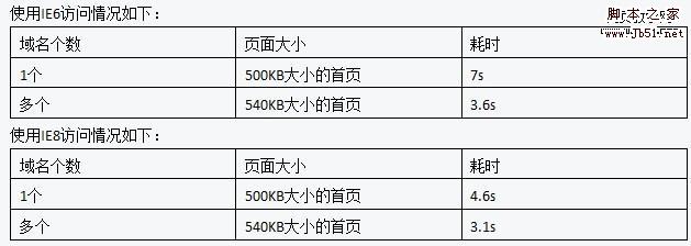 由以上數(shù)據(jù)可以看到,多個域名,不管是在IE6和IE8的情況下,拆分域名,都會使網(wǎng)站的打開速度變快。