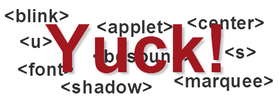 同時(shí),我們還可以從現(xiàn)代 Web 站點(diǎn)的源代碼中看到大量90年代風(fēng)格的東西,結(jié)構(gòu)與式樣摻雜在一起,雖然這樣的代碼現(xiàn)代瀏覽器仍然支持,但可維護(hù)性變得很差。
