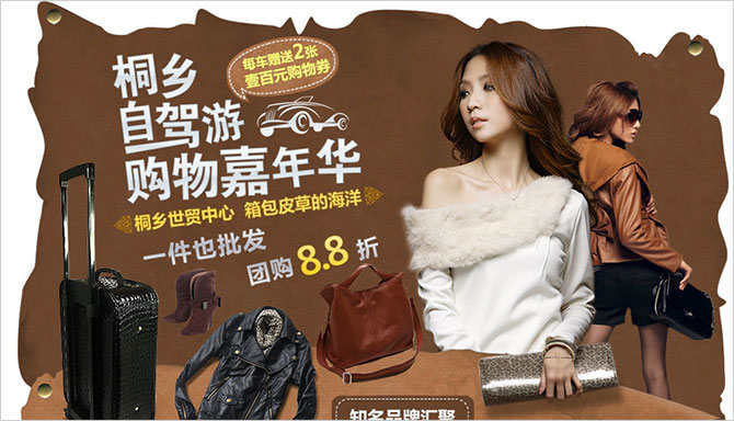 有米有皮草的感覺~~。皮質(zhì)顏色的大背景,幾件皮質(zhì)的高檔商品。兩個穿著皮草的靚女·,皮質(zhì)的小標簽·····再加上金屬質(zhì)感的釘扣.一個充滿皮草味道的專題,時尚還有點小霸氣。