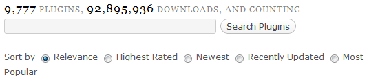 當(dāng)網(wǎng)站的平均瀏覽搜索結(jié)果頁面數(shù)偏高時(shí),我們需要關(guān)注下是不是站內(nèi)搜索的結(jié)果排序存在問題。我們可以看到很多網(wǎng)站的搜索結(jié)果提供了排序選擇功能,這里看一下Wordpress網(wǎng)站的插件搜索頁面: